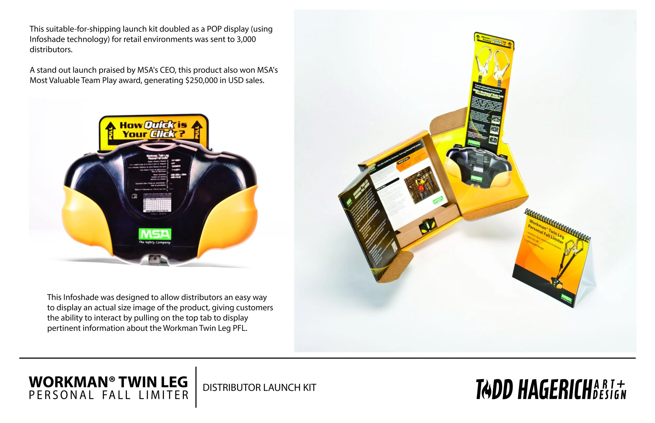 Also included in the launch kit is the Infoshade POP display that was sent to 3,000 distributors for use in retail environments. This 1 to 1 scale display of the product features a pull-out shade containing all the key features & a QR code to link to more detailed information.