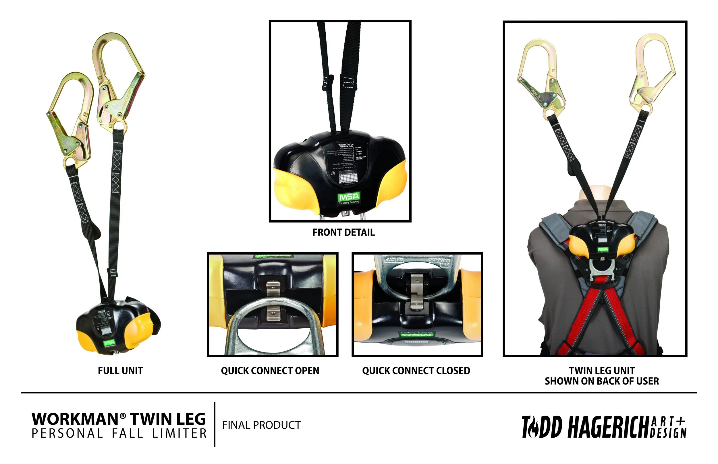 The Workman® Twin Leg Personal Fall Limiter increases worker productivity by providing greater mobility and continuous connection (100% tie-off ) while moving from one location to another, offering a great alternative to twin leg shock-absorbing lanyards. The Workman Personal Fall Limiter features the ARCA™ Harness Connection. The innovative, integral ARCA Harness Connection makes the Workman Personal Fall Limiter easier to use than any product on the market in which a user simply inserts a D-ring