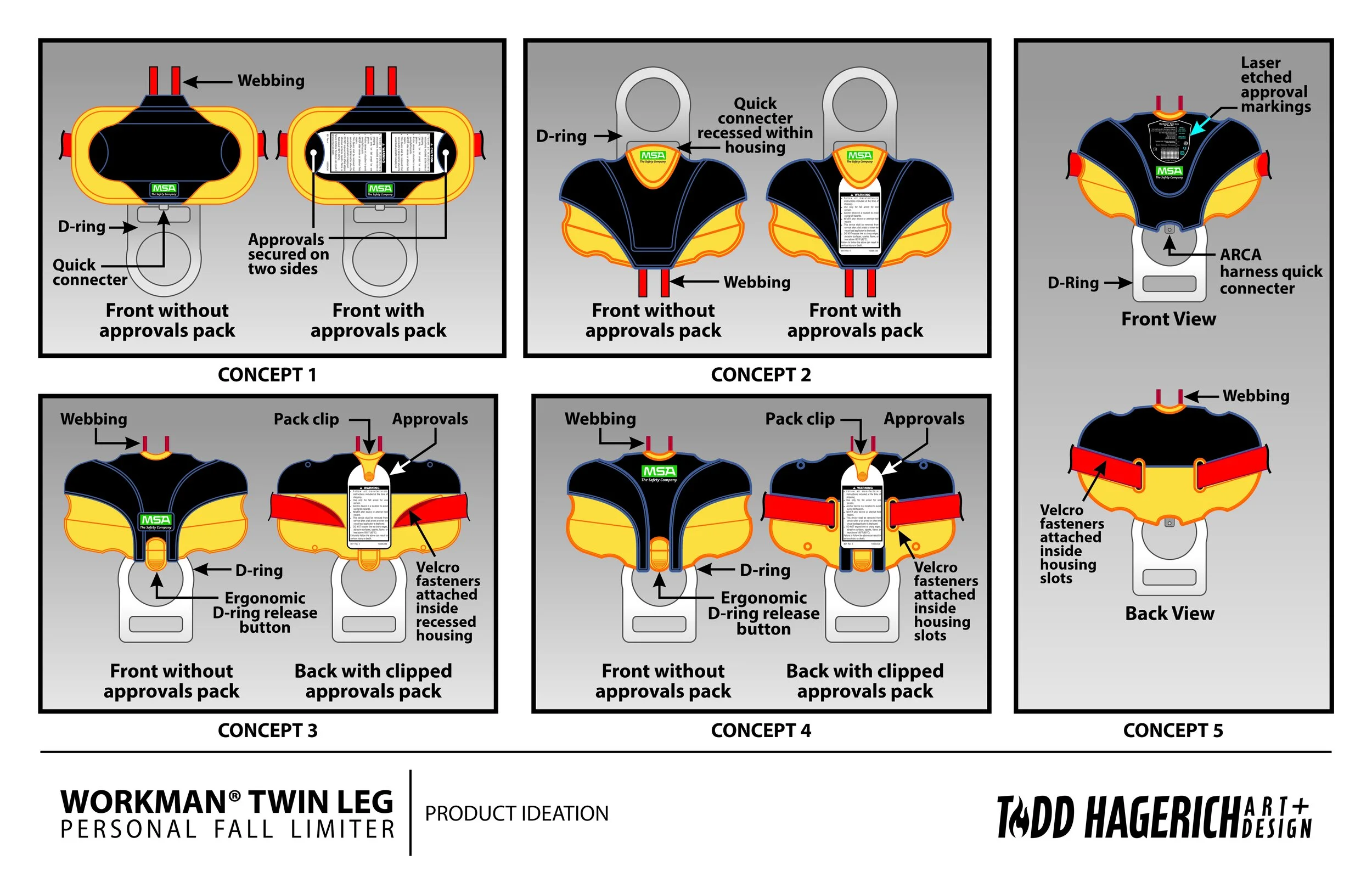 Concept ideation goes through many stages of development before a final product can be produced. For this project, not only were form, function, & ease of use through ergonomics key factors in its design but creating a cost-effective product that would fit well within the existing Workman fall protection family needed to be considered.